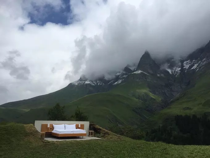 Located in the Graubünden mountains, the hotel offers no walls, roof, or bathroom. Basically, it is a bed on a grassy opening. Yet the highlight here is the sublime view of Mother Nature, in which travelers sleep with a blanket of stars, and wake up breathing the fresh air of 6,463 feet above sea level.