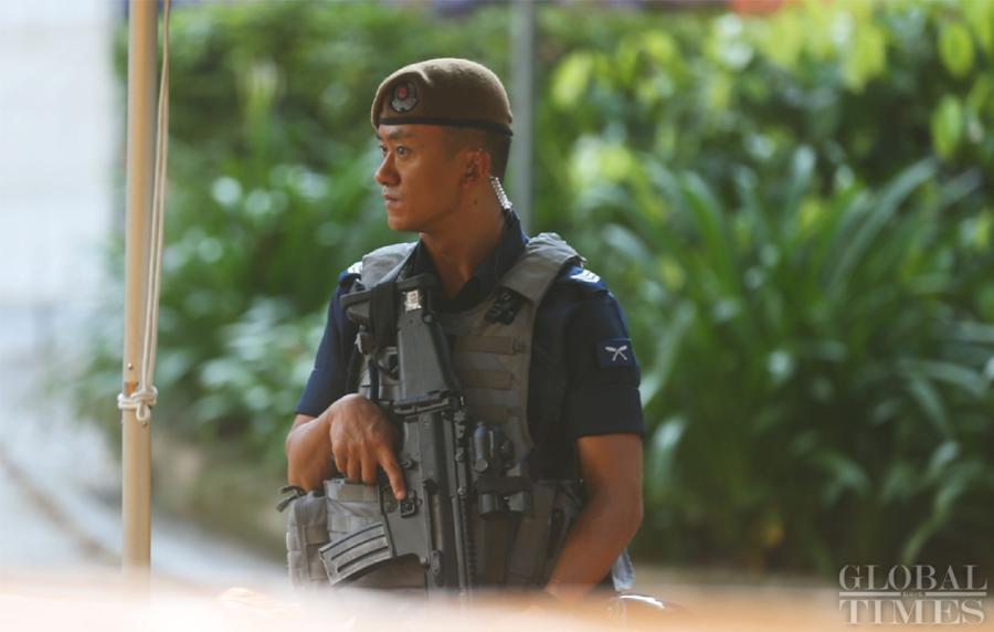 A soldier from the Gurkha unit is on duty to ensure the security for the upcoming Trump-Kim summit in Singapore on Sunday. (Photo: Yang Sheng/GT)