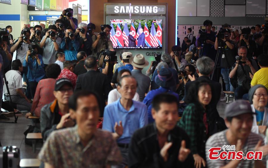 People watch from a shopping mall food court in the Los Angeles neighborhood of Koreatown as Singapore hosts a summit between U.S. President Donald Trump and the Democratic People's Republic of Korea (DPRK) leader Kim Jong Un, at a railway station in Seoul, South Korea, 2018. (Photo/Agencies)