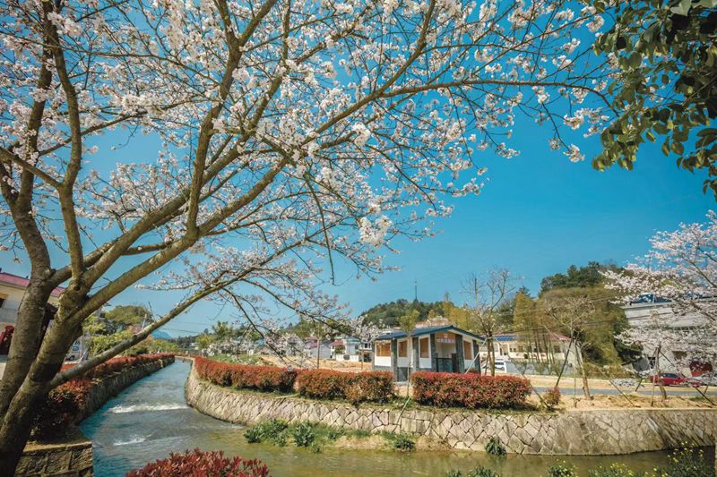 Famous for its cherry blossom, Doumulong Village built a 500-meter boulevard, planting various cherry trees on each side. (Photo by Quzhou local government)