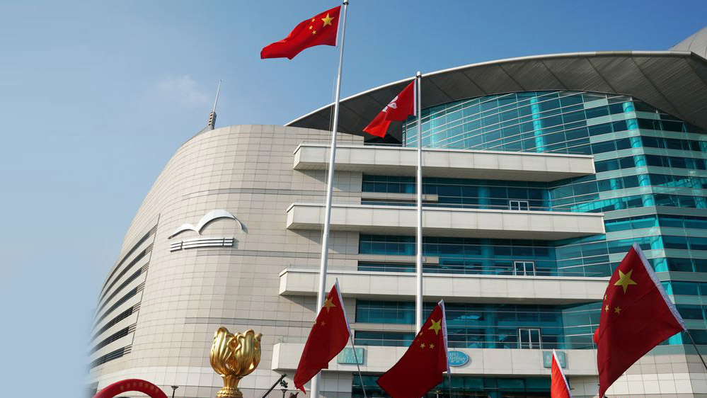 People attend a national flag raising ceremony at the Golden Bauhinia Square in HKSAR, Sept 8, 2019. [Photo/Xinhua]
