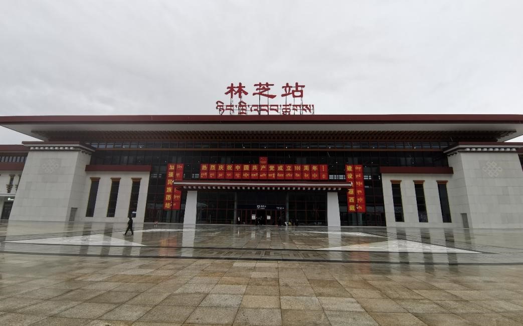 Photo shows the exterior of the main building of the Nyingchi Railway Station in Nyingchi city, southwest China’s Tibet autonomous region. (People’s Daily/ Zhang Xiaodong)