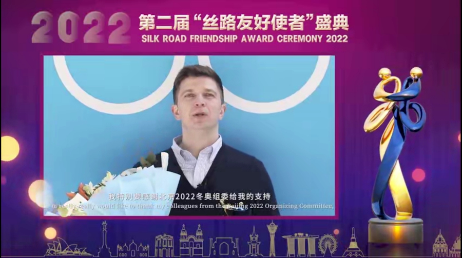 Twelve individuals received the honorary title of the Ambassador of Silk Road Friendship. The recipients are listed as follows: Gulnar Shaimergenova from Kazakhstan, a scholar who helped her country send its wheat to Vietnam via China for the first time; Jordanian businessman Mohanad Ali Moh'd Shalabi, a dispute mediator in Yiwu, east China's Zhejiang Province; Ibrokhim Y. Abdurakhmonov, Minister of Innovative Development of Uzbekistan who contributed to a community of health along the Silk Road; Chai Yang, a young man from Laos who became a veteran worker in housing construction under the China-Laos Railway project with the help of his Chinese supervisor; Sean Dara, a Cambodian youth committed to China-Cambodia cooperation; Athuai Deng Akok, an employee of China Harbour Engineering Company Ltd. from South Sudan who protected his Chinese colleagues and guarded the compound of his company whenever armed conflict broke out; Rehmat Ali, a Pakistani doctor who followed in the footsteps of his father and worked on the upgrading of the Karakoram Highway; Simon Williams, an Australian wind power specialist who has provided an example of cooperation in the area of renewable resources between China and Australia; Sonja Mühlberger from Germany, who has committed time and effort to recording the history of Jewish refugees in Shanghai; Li Yang, a musician who promoted friendly relations between China and Thailand through a traditional Chinese musical instrument called the “guzheng”; Ahmed Waqas Bhatty, a Pakistani doctor who promoted cooperation in organ transplantation between China and Pakistan; and, Normunds Kotans, a Latvian expert at the Beijing 2022 Winter Olympic Games who participated in the design of the National Sliding Centre, dubbed the "Flying Snow Dragon."