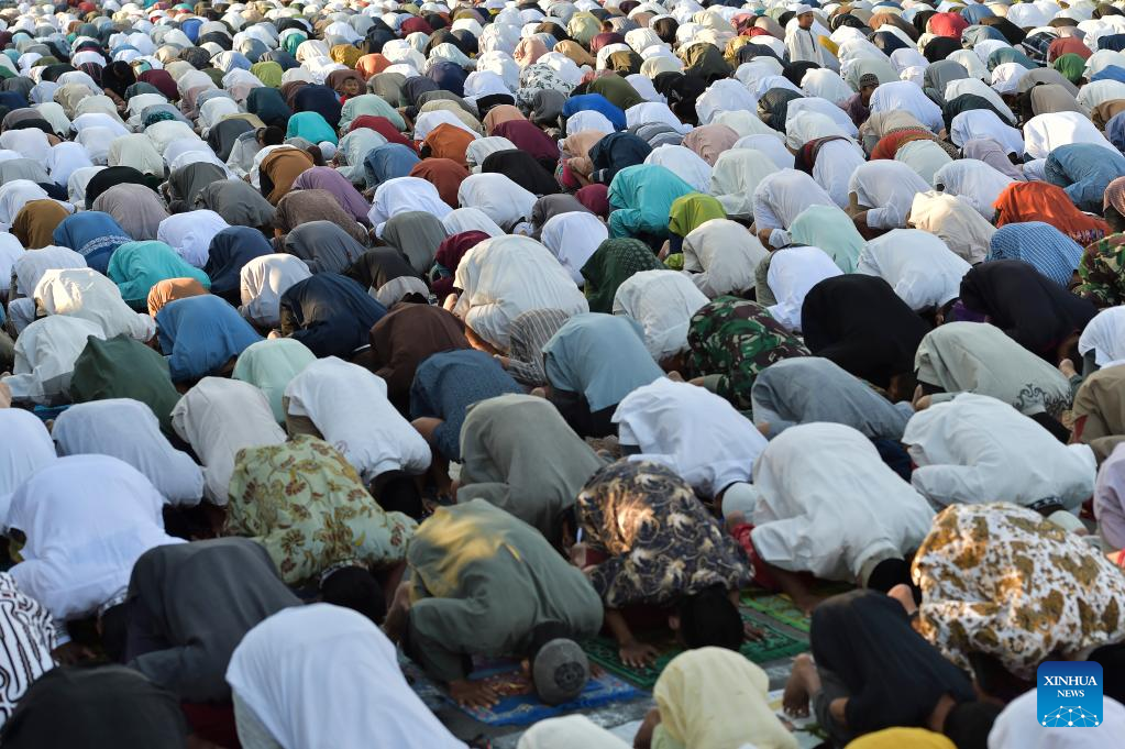 Indonesian Muslims perform Eid al-Adha prayers in Jakarta