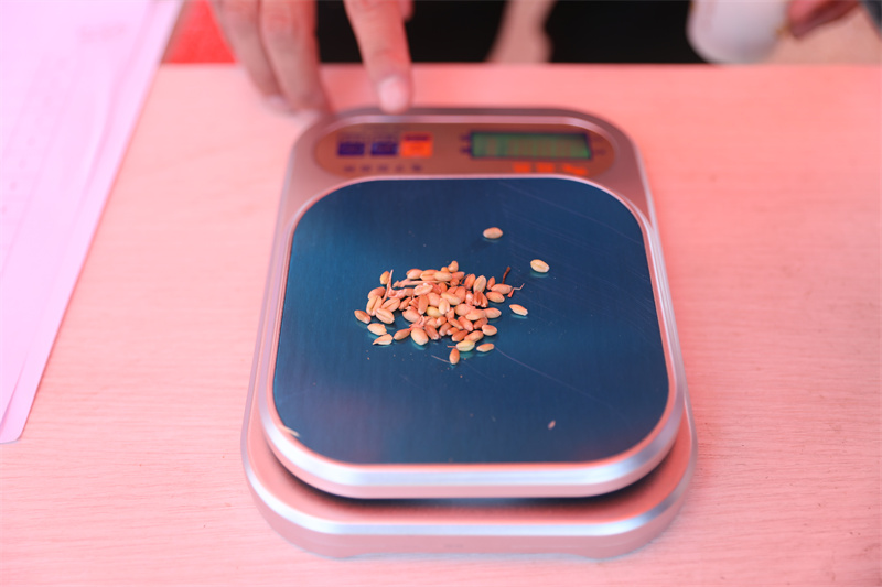 A staff member calculates the wheat harvest loss rate. (Photo/Jia Peng)