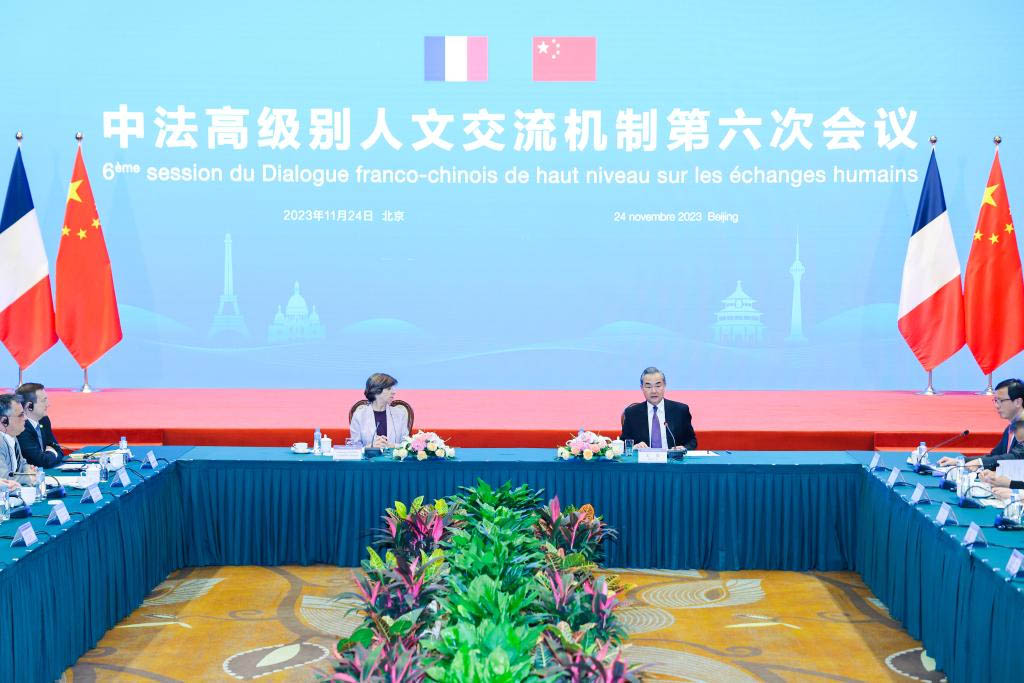 BEIJING, Nov. 24 (Xinhua) -- Chinese Foreign Minister Wang Yi and French Minister for Europe and Foreign Affairs Catherine Colonna co-chaired the 6th meeting of the China-France high-level dialogue mechanism on people-to-people exchanges as coordinators of each side in Beijing on Friday.