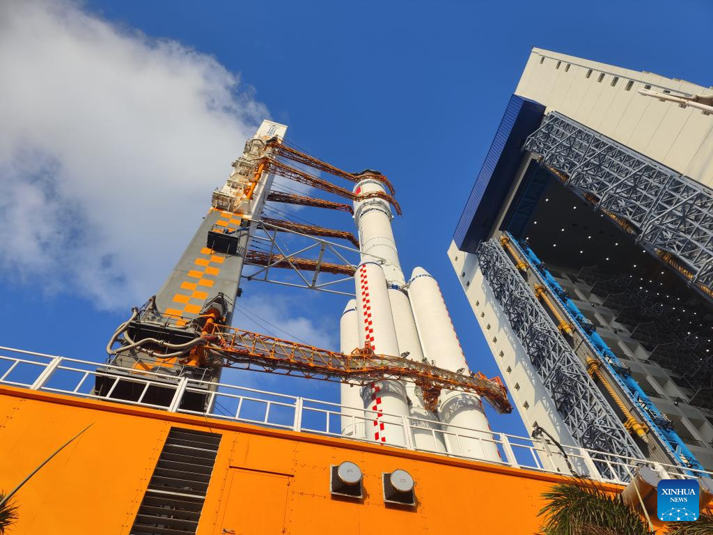 WENCHANG, Hainan, Jan. 15 (Xinhua) -- The combination of the Tianzhou-7 cargo spacecraft and a Long March-7 Y8 carrier rocket was vertically transferred to the launching area on Monday.