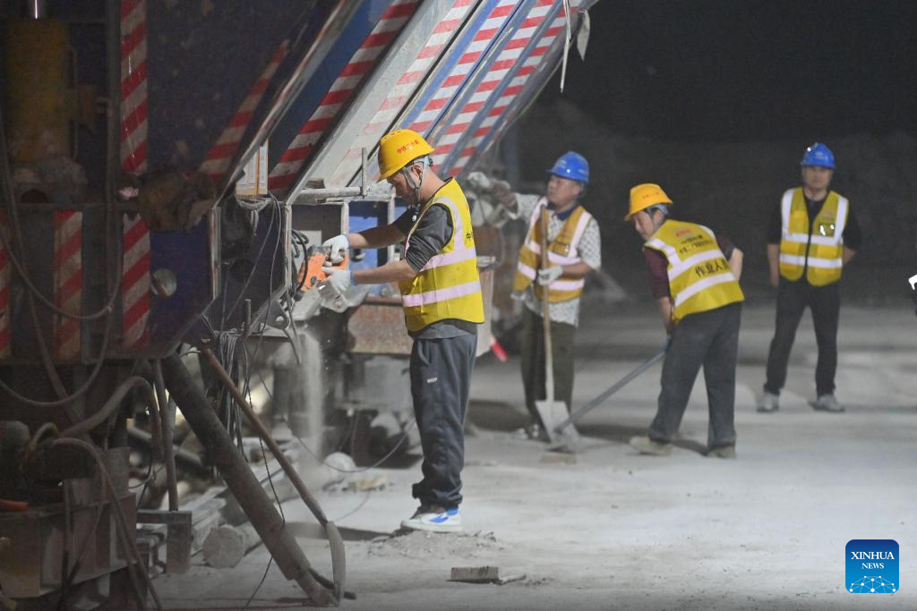 Workers are pictured at the construction site of an expressway linking Yufeng and Yizhou of south China's Guangxi Zhuang Autonomous Region in Liuzhou of Guangxi, Jan. 23, 2025.