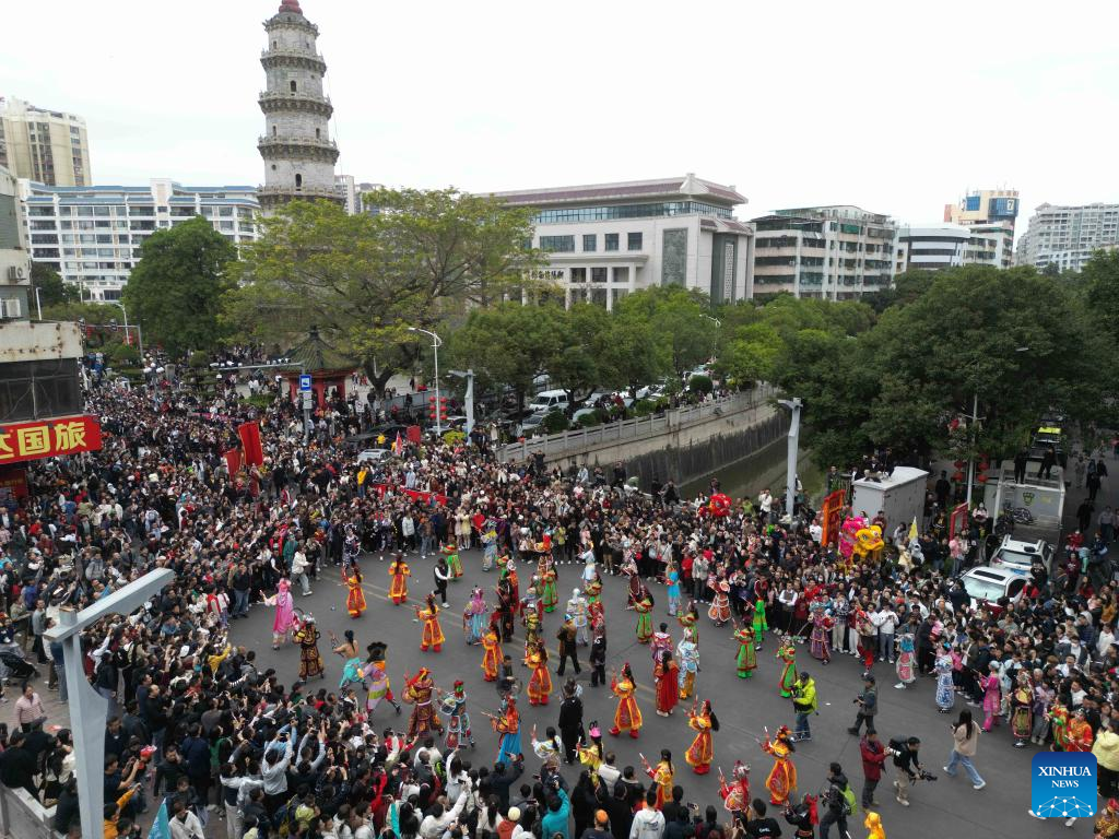 A Yingge dance team performs during an event celebrating the Spring Festival in Shantou, south China's Guangdong Province, Feb. 2, 2025. (Photo by Yao Jun/Xinhua)