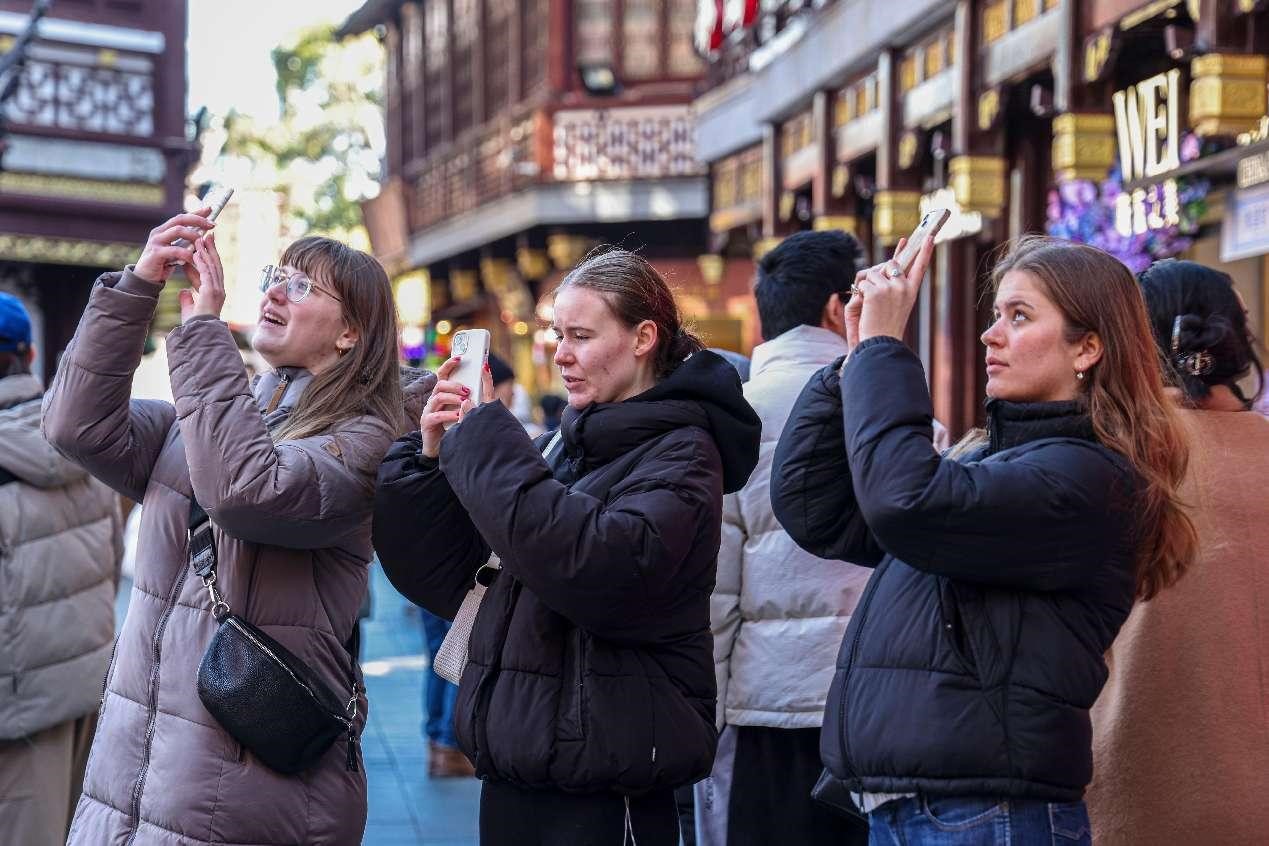 Foreign tourists take photos in Shanghai's Yuyuan Garden, Jan. 27, 2025. (People's Daily Online/Wang Chu)