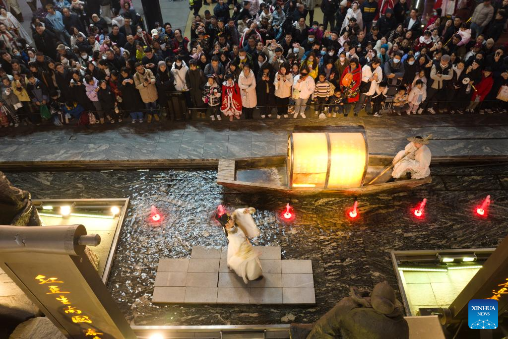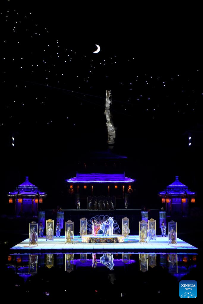 This photo shows a performance staged at the Huaqing Palace scenic area in Xi'an, northwest China's Shaanxi Province, Dec. 1, 2024. As the provincial capital of northwest China's Shaanxi Province, Xi'an, with a history of over 3,100 years, has served as the capital city for 13 dynasties of China. Under the policies of protection and utilization of cultural relics, the historical and cultural resources of Xi'an have been well preserved. (Xinhua/Zou Jingyi)