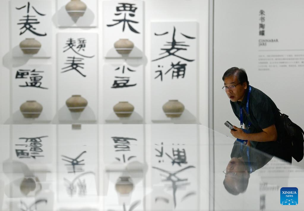 A tourist looks at exhibits displayed during an exhibition in Shaanxi History Museum in Xi'an, northwest China's Shaanxi Province, May 18, 2024. As the provincial capital of northwest China's Shaanxi Province, Xi'an, with a history of over 3,100 years, has served as the capital city for 13 dynasties of China. Under the policies of protection and utilization of cultural relics, the historical and cultural resources of Xi'an have been well preserved. (Xinhua/Li Yibo)
