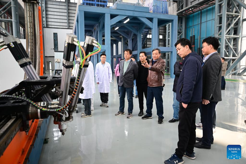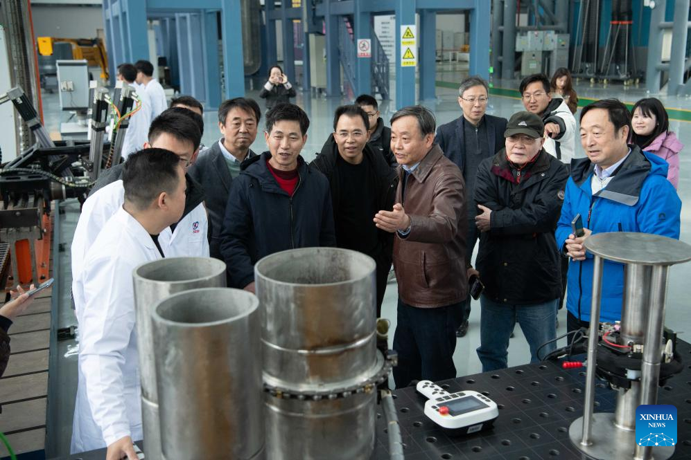 Experts conduct review and acceptance procedures on the one-eighth vacuum chamber and overall installation system, one of the key subsystems of the Comprehensive Research Facility for Fusion Technology (CRAFT), in Hefei, capital of east China's Anhui Province, March 9, 2025. (Xinhua/Zhou Mu)