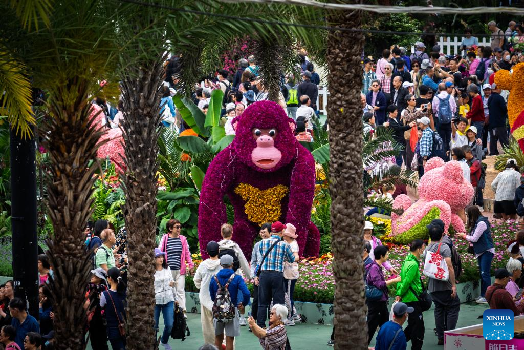 People visit Hong Kong Flower Show 2025 at the Victoria Park in south China's Hong Kong, March 14, 2025. The flower show kicked off here on Friday and will last until March 23. (Xinhua/Zhu Wei)