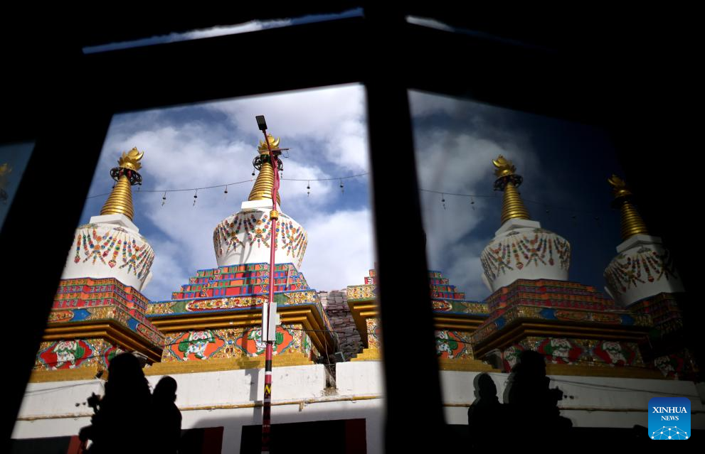 People pray as they circle the Jiana mani stone mound in Yushu City, Yushu Tibetan Autonomous Prefecture, northwest China's Qinghai Province, April 6, 2025. The Jiana mani stone mound is a cultural relic under national protection. The mound is composed of billions of mani stones and used by local people when they hold prayers' wheels and mutter the six-syllable prayer to observe their daily ritual. (Xinhua/Qi Zhiyue)
