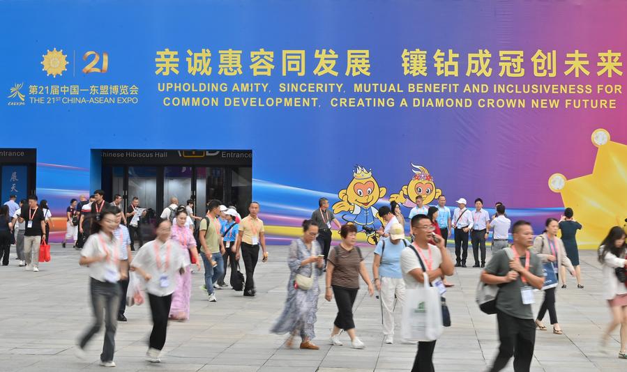 This photo shows a view of Nanning International Convention and Exhibition Center, the main venue for the 21st China-ASEAN Expo, in Nanning, south China's Guangxi Zhuang Autonomous Region, Sept. 24, 2024. (Xinhua/Huang Xiaobang)