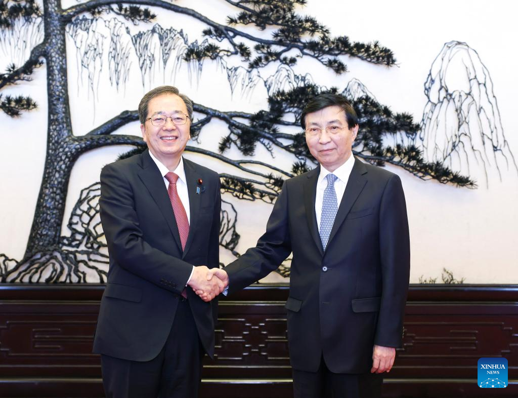 Wang, who is also chairman of the National Committee of the Chinese People's Political Consultative Conference (CPPCC), said China and Japan should jointly implement the important consensus reached by the leaders of the two countries, adhere to their promises, establish a correct understanding, promote win-win cooperation, and join hands to meet challenges.