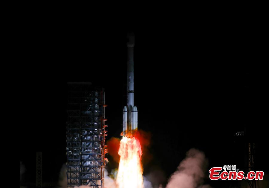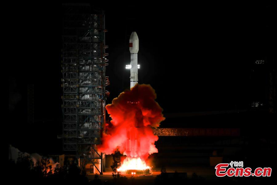A Long March-3B carrier rocket carrying the Tianlian II-05 satellite blasts off from the Xichang Satellite Launch Center in southwest China's Sichuan Province, April 27, 2025. (China News Service/Yang Xi)