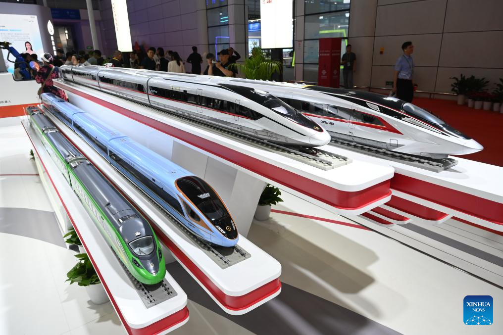 This photo taken on April 28, 2025 shows a booth of China Railway at the experience area of the 8th Digital China Summit in Fuzhou, southeast China's Fujian Province. With more than 300 professional institutions attending, the 8th Digital China Summit opened its experience area to professional visitors on Monday, showcasing the nation's digital transformation achievements amid robust growth in the digital sector. (Xinhua/Lin Shanchuan)