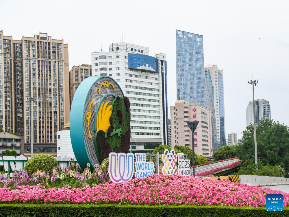 This photo taken on April 29, 2025 shows an installation for the World Games 2025 in Chengdu, southwest China's Sichuan Province. The Games will be held in Chengdu from Aug. 7 to 17. (Xinhua/Wang Xi)