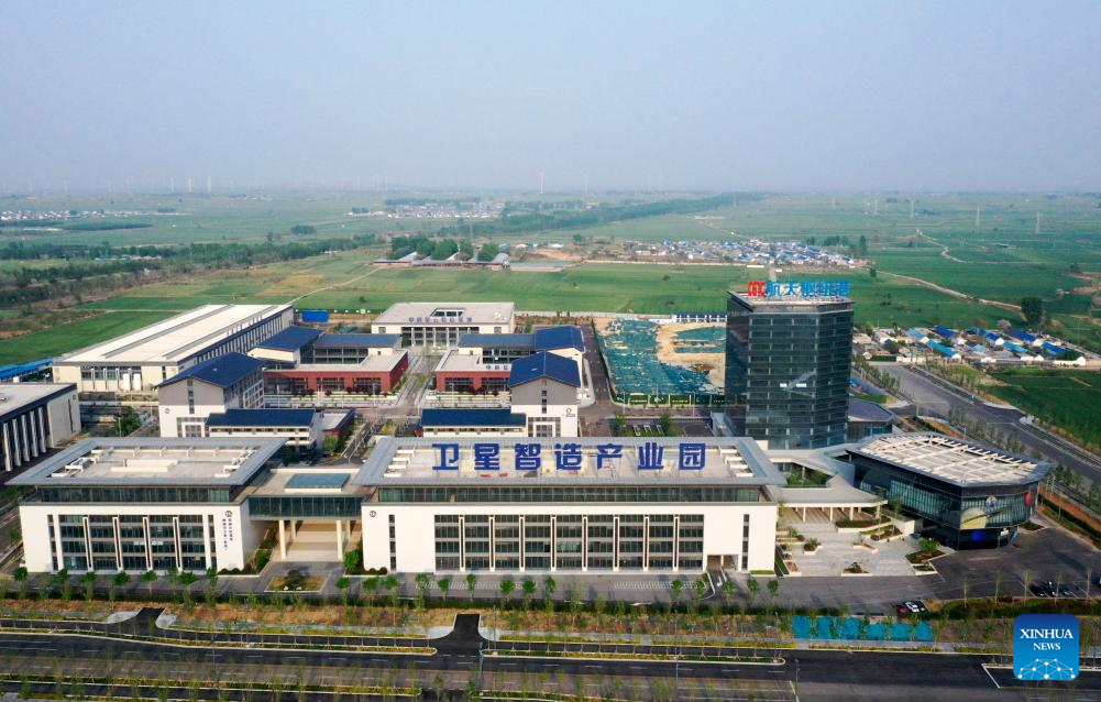 A drone photo take on April 20, 2025 shows a satellite manufacturing industrial park in Hebi, central China's Henan Province. (Xinhua/Li Jianan)
