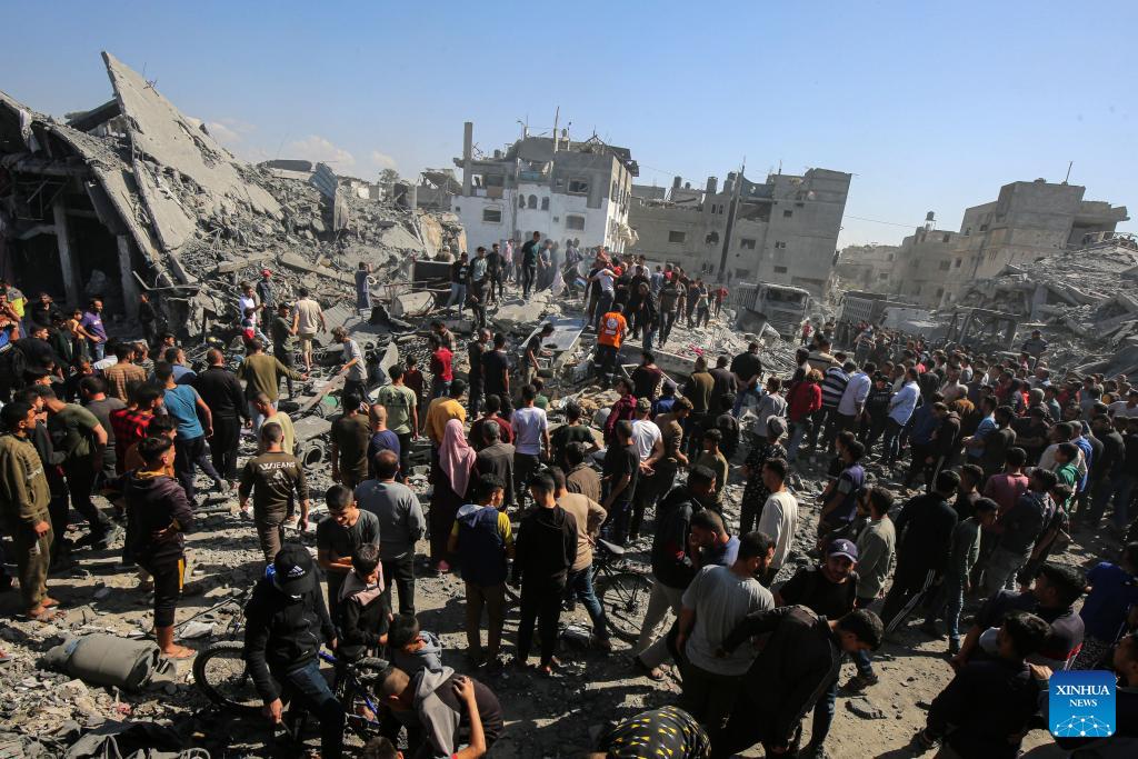 Palestinians search for survivors after an Israeli shelling in Jabalia refugee camp, northern Gaza Strip, on May 2, 2025. At least 32 Palestinians have been killed and many others injured in Israeli airstrikes across the Gaza Strip since dawn on Friday, the enclave's Civil Defense reported. (Photo by Rizek Abdeljawad/Xinhua)