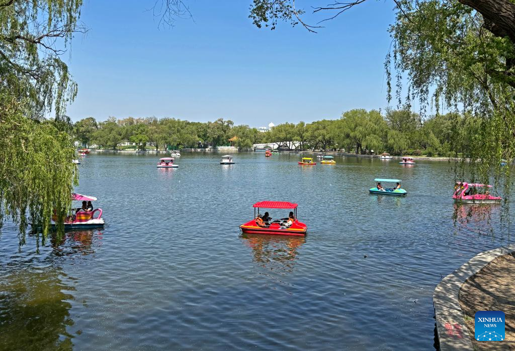 Citizens row boats in Beiling Park of Shenyang, northeast China's Liaoning Province, May 11, 2025. (Xinhua/Zhou Hua)