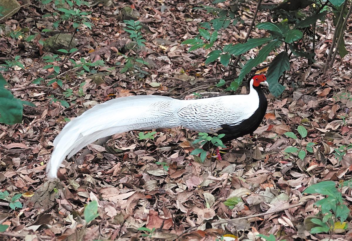 A silver pheasant wanders Dinghu Mountain reserve in April. (Sun Zifa/China News Service)