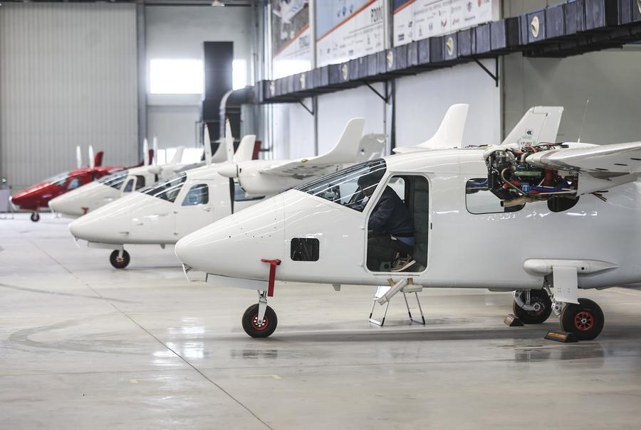 Staff members work on the assembly of an aircraft at Rhyxeon General Aircraft Co., Ltd. in Shenyang, northeast China's Liaoning Province, May 13, 2024. (Xinhua/Li Gang)