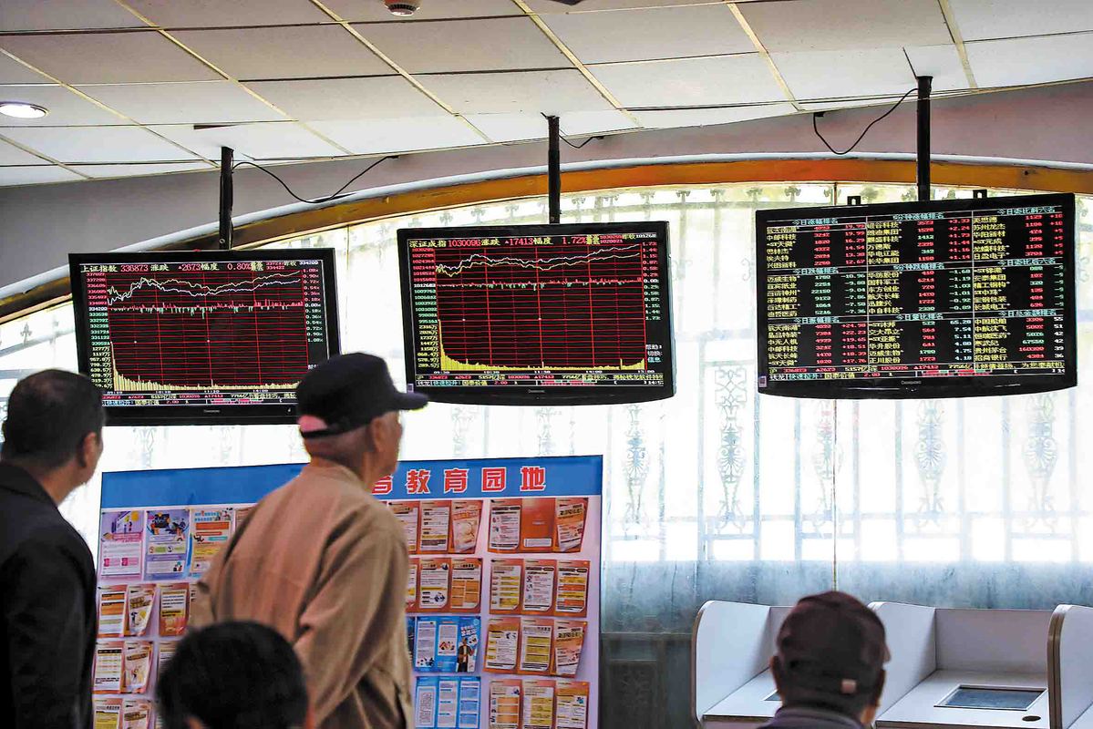 Investors look at stock market quotations in a securities trading hall in Shanghai on Monday. (Photo/China Daily)