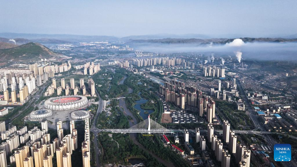 An aerial drone photo taken on May 22, 2025 shows a view of Xining, northwest China's Qinghai Province. (Xinhua/Qi Zhiyue)