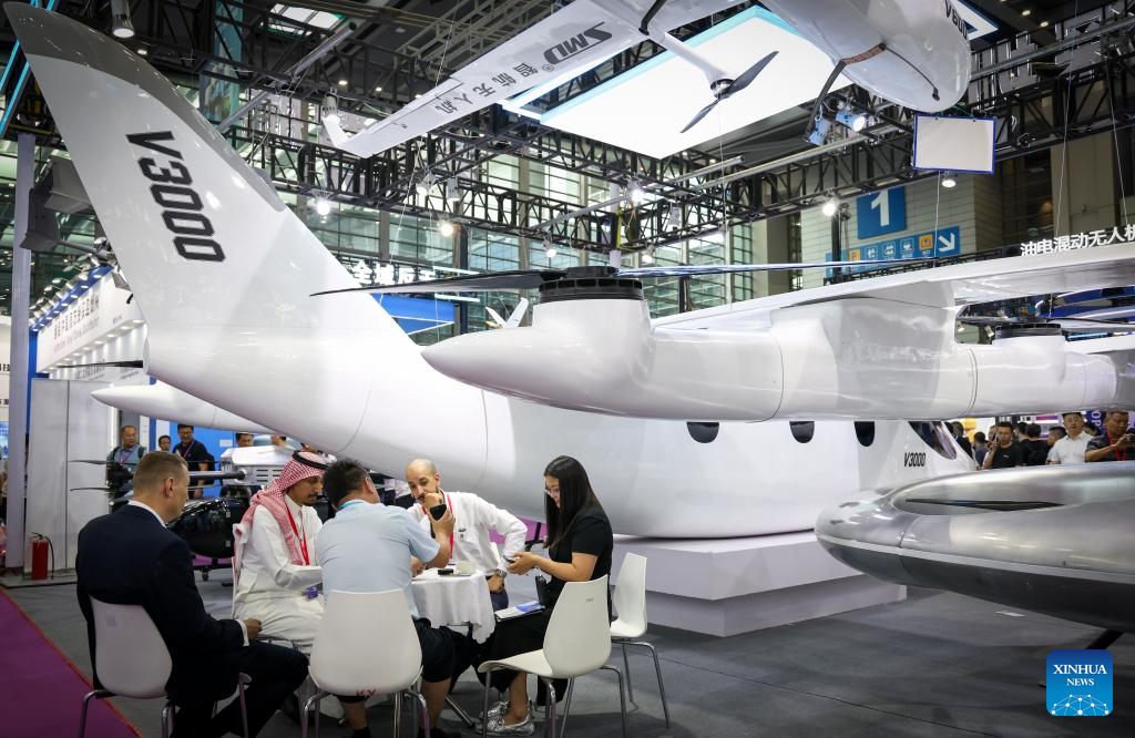 Visitors attend a drone expo in Shenzhen, south China's Guangdong Province, May 23, 2025. The 9th Drone World Congress 2025, International Low Altitude Economy and UAS Expo 2025 and the 10th Shenzhen International UAV Expo kicked off on Friday. Over 800 companies with more than 5,000 drone products participated in the expo. (Xinhua/Mao Siqian)
