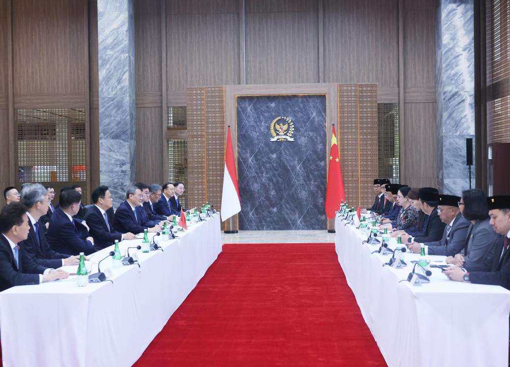 The Chinese side is willing to work with Indonesia to strengthen friendly exchanges between their legislative bodies and inter-party cooperation, and enhance policy communication and the sharing of governance experiences, said Li, calling on both sides to make greater achievements from their cause of friendship.