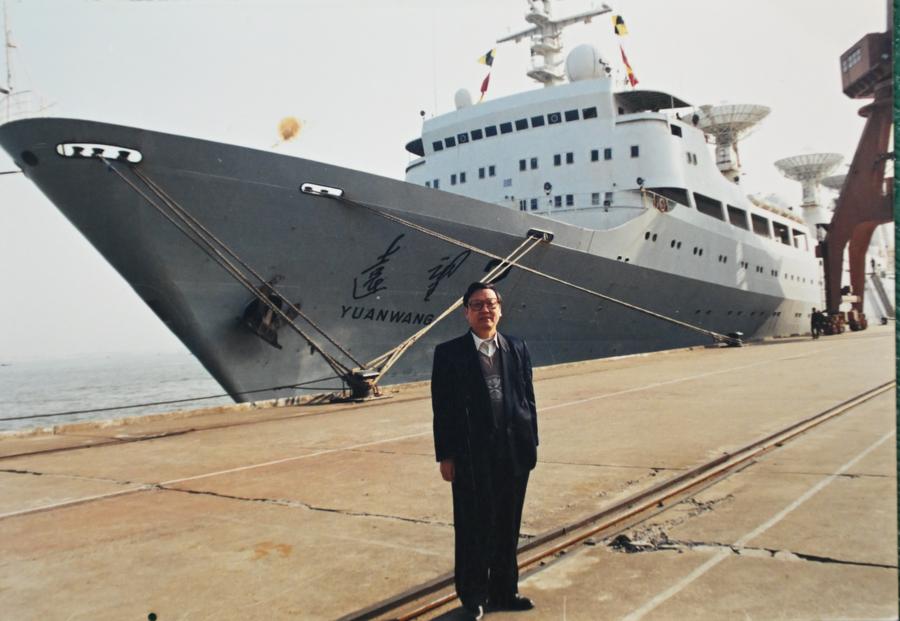 This file photo taken in the 1990s shows Liu Jiaxing posing for a photo during his assignment on the telemetry and control equipment for China's space tracking ship Yuanwang. (Xinhua)