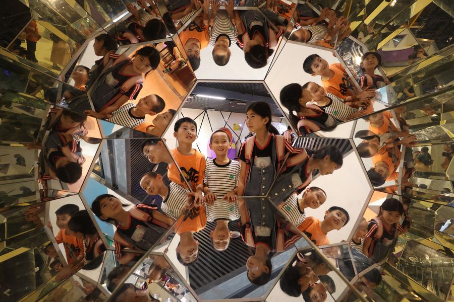 Children have fun at Xiamen Science and Technology Museum in Xiamen, southeast China's Fujian Province, Oct. 2, 2024. (Photo by Zeng Demeng/Xinhua)