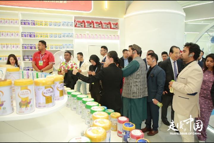 Expert commentator explains the cutting-edge technology behind Yili's latest health product to visiting journalists, north China's Inner Mongolia Autonomous Region, May 12, 2025. (Photo/Courtesy of Travelogue of China)