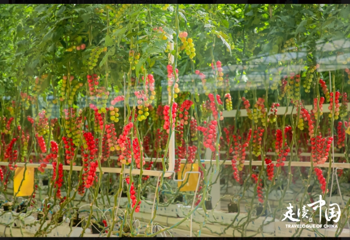 Freshly cultivated tomatoes ready for harvest at Qahar Right Wing Front Banner Plant Factory, north China's Inner Mongolia Autonomous Region, May 15, 2025. (Photo/Courtesy of Travelogue of China)