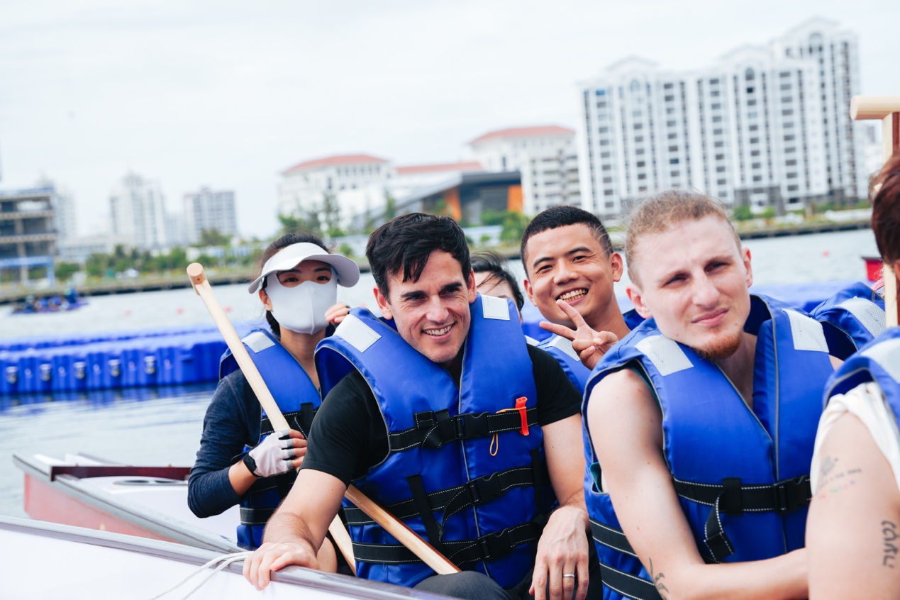 When he learned international teams could participate, he signed up right away. "I've competed in three dragon boat races and truly love this sport. Especially when I hear my teammates shouting 'Jiayou' (Come on), I realize I'm part of a strong, united team."