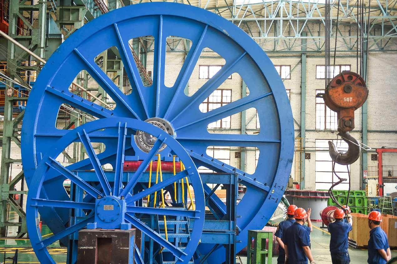 In the assembly workshop of CITIC Heavy Industries Co., Ltd. in Luoyang, central China's Henan province, workers are assembling mine hoist sheaves and other mining equipment bound for overseas markets. (Photo by Huang Zhengwei/People's Daily Online)