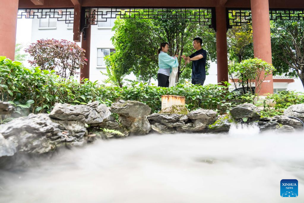 Actors practice at the yard of Hunan Kunqu Opera Troupe in Beihu District of Chenzhou City in central China's Hunan Province, June 4, 2025.