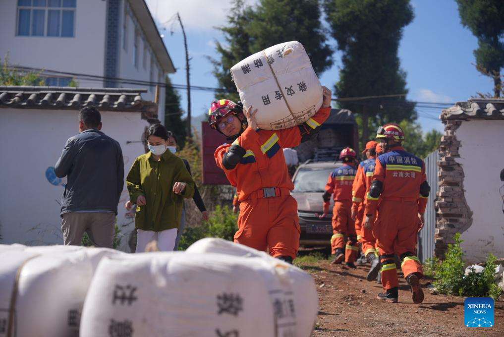 The quake was strongly felt in Eryuan County, Dali City and Heqing County, waking some residents. Local authorities in Eryuan County have promptly initiated an emergency response, with townships assessing the impact. (Photo by Luo Xincai/Xinhua)