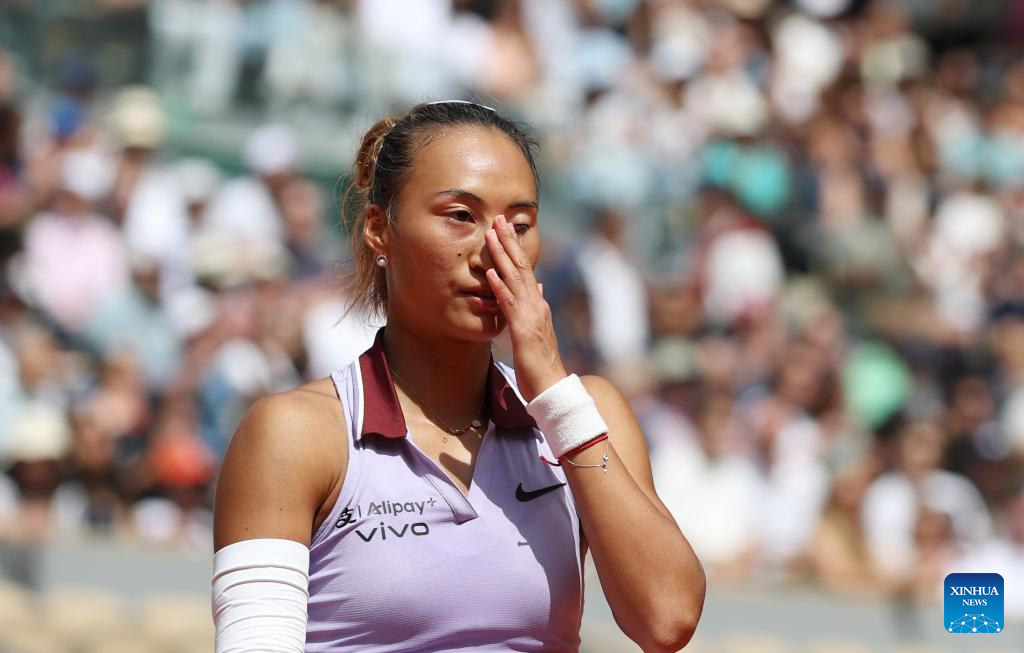 China's tennis sensation Zheng Qinwen lost to world No. 1 Aryna Sabalenka of Belarus 7-6 (3), 6-3 in the French Open women's singles quarterfinals here on Tuesday. (Xinhua/Gao Jing)