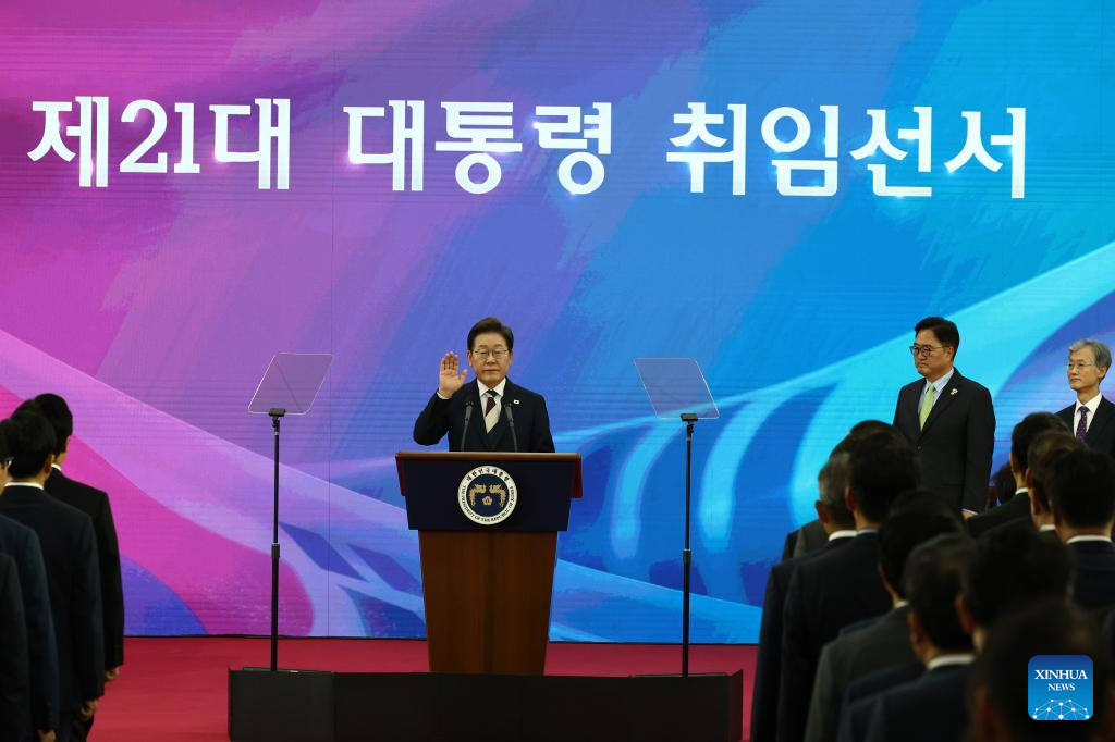 Lee Jae-myung was sworn in as South Korea's new president on Wednesday after formally beginning his single five-year term earlier in the day. (Xinhua)