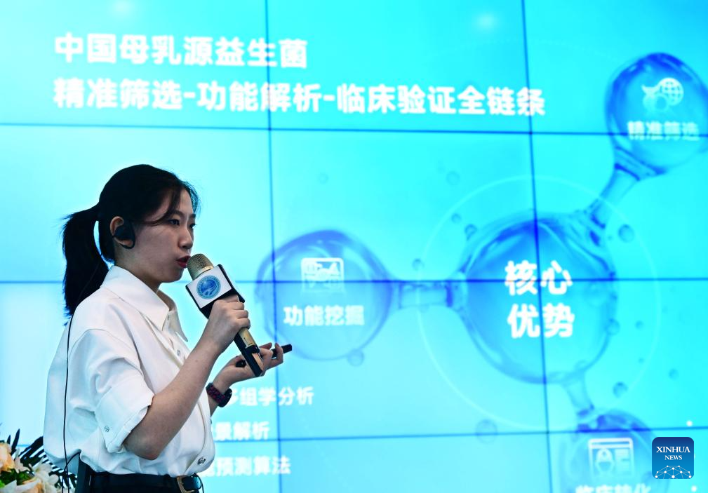 A contestant from China attends a roadshow during the final of the 4th SCO (Shanghai Cooperation Organization) Member States Youth Innovation and Entrepreneurship Competition in Qingdao, east China's Shandong Province, June 8, 2025. The final was held here on Sunday, with 18 groups and projects from 9 countries attending. (Xinhua/Li Ziheng)