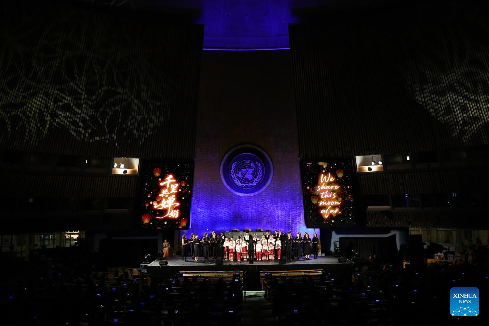 A chorus is staged during an art performance at the UN headquarters in New York, June 9, 2025. A series of events was held on Monday at UN Headquarters in New York to commemorate the first anniversary of the International Day for Dialogue among Civilizations.