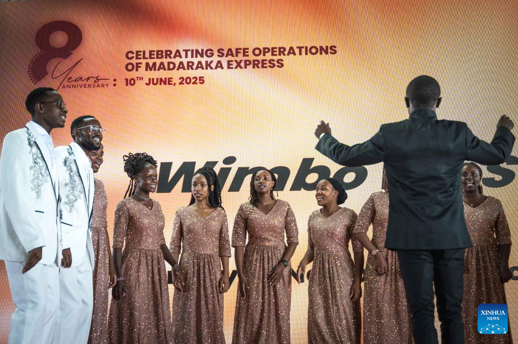 A celebration to mark eight years of seamless operation of the Chinese-built Mombasa-Nairobi Standard Gauge Railway (SGR) in Kenya is held in Nairobi, Kenya, June 10, 2025. (Xinhua/Li Yahui)