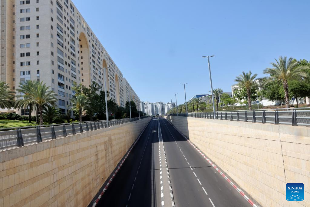 This photo taken on June 13, 2025 shows an empty street in Tel Aviv, Israel. The Israel Defense Forces (IDF) confirmed early Friday in a statement that it had launched a "preemptive, precise, combined" attack on dozens of military targets, including nuclear targets in different areas of Iran, adding, "Iran is closer than ever to obtaining a nuclear weapon."