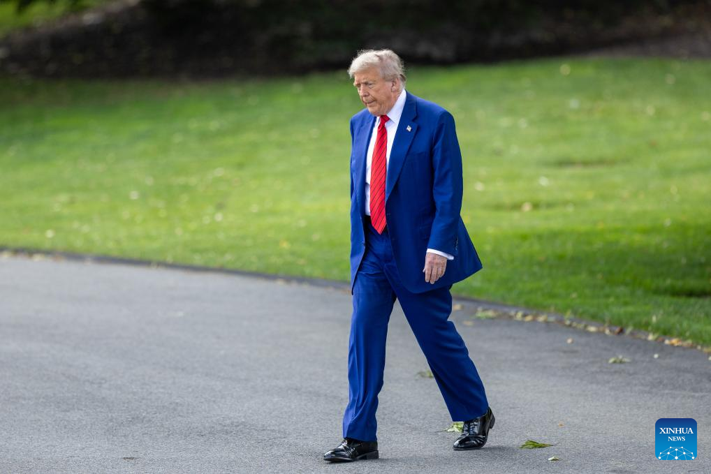 U.S. President Donald Trump walks toward the South Lawn to board Marine One at the White House in Washington, D.C., the United States, on June 20, 2025. Trump said Friday it will be difficult to request Israel stop its airstrikes in Iran, even as he pursues a diplomatic solution to end the conflict. (Xinhua/Hu Yousong)