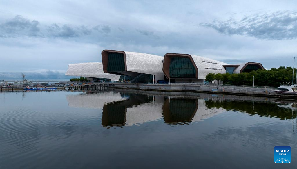 A drone photo taken on June 19, 2025 shows an exterior view of the National Maritime Museum of China in north China's Tianjin. In recent years, Binhai New Area in Tianjin has made great efforts to protect ecological environment and upgraded the layout of parks. Several seaside landmarks in Binhai have become popular tourist destinations. (Xinhua/Zhao Zishuo)