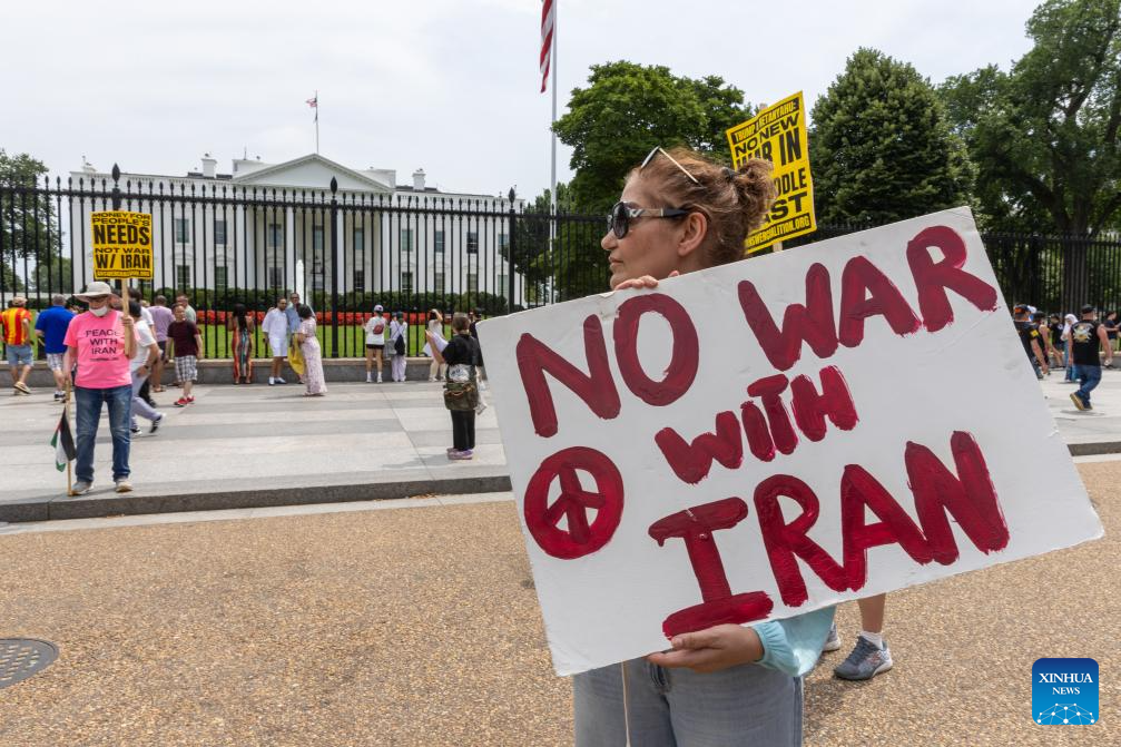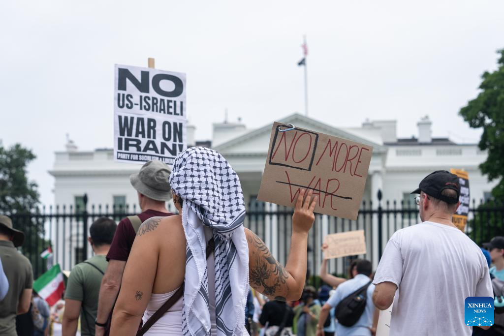 Protesters rally outside the White House to denounce U.S. air strikes on Iran's nuclear facilities, in Washington, D.C., the United States, on June 22, 2025. (Xinhua/Hu Yousong)